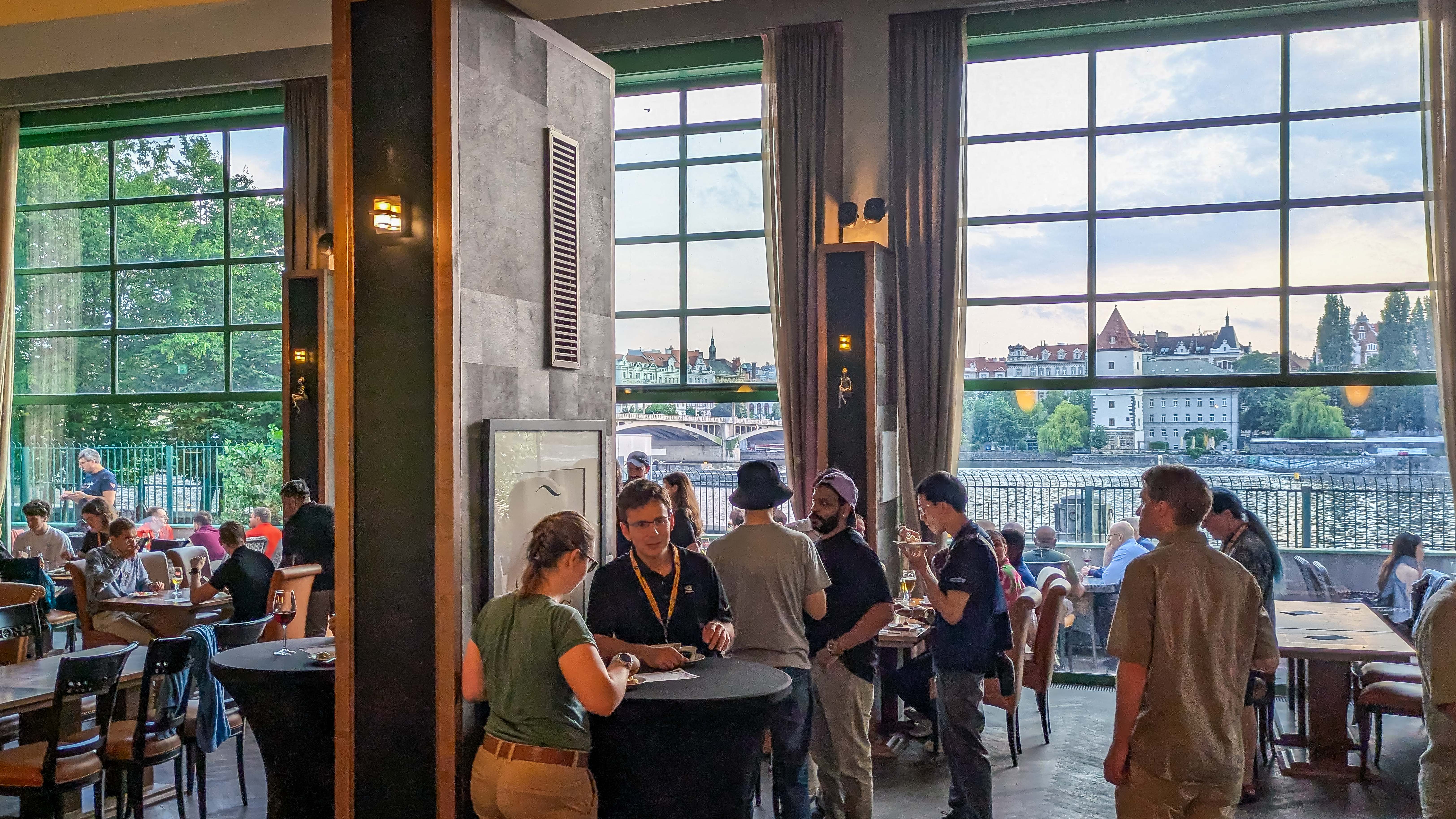 EuroPython 2025の前日19:30、ヴルタヴァ川沿いの Mánes Restaurant でスピーカーディナーが行われました(スピーカー限定)。私は去年も参加しており、当時の様子は昨年のコラムにまとめています。参加者はヨーロッパを中心に、CPythonのコア開発者やOSSのメンテナが多かったです。