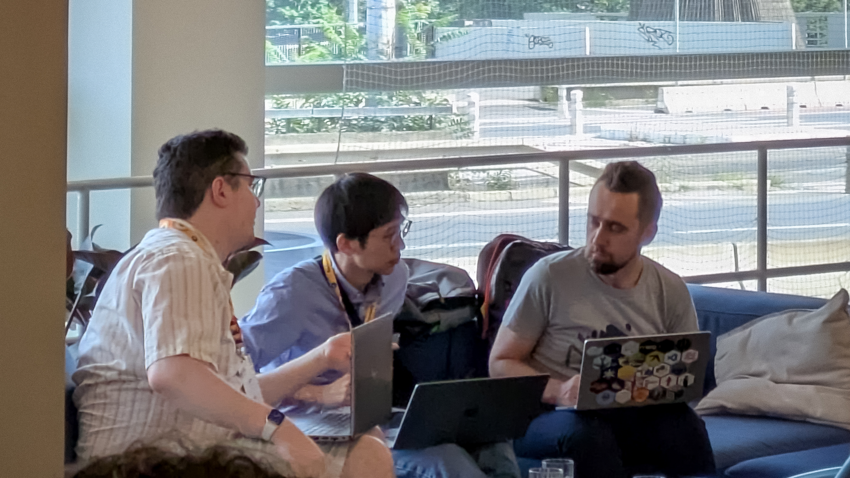 途中で Łukasz Langa さん(CPythonコア開発者/Python 3.8・3.9リリースマネージャー)が合流し、しばらく雑談をしました。この場では技術の話はせず、主に近況やプライベートの話題でした。たとえば、Sebastián さんが日本に行く予定だと聞き、日本横断旅行でのエピソードやおすすめスポットについて話しました。