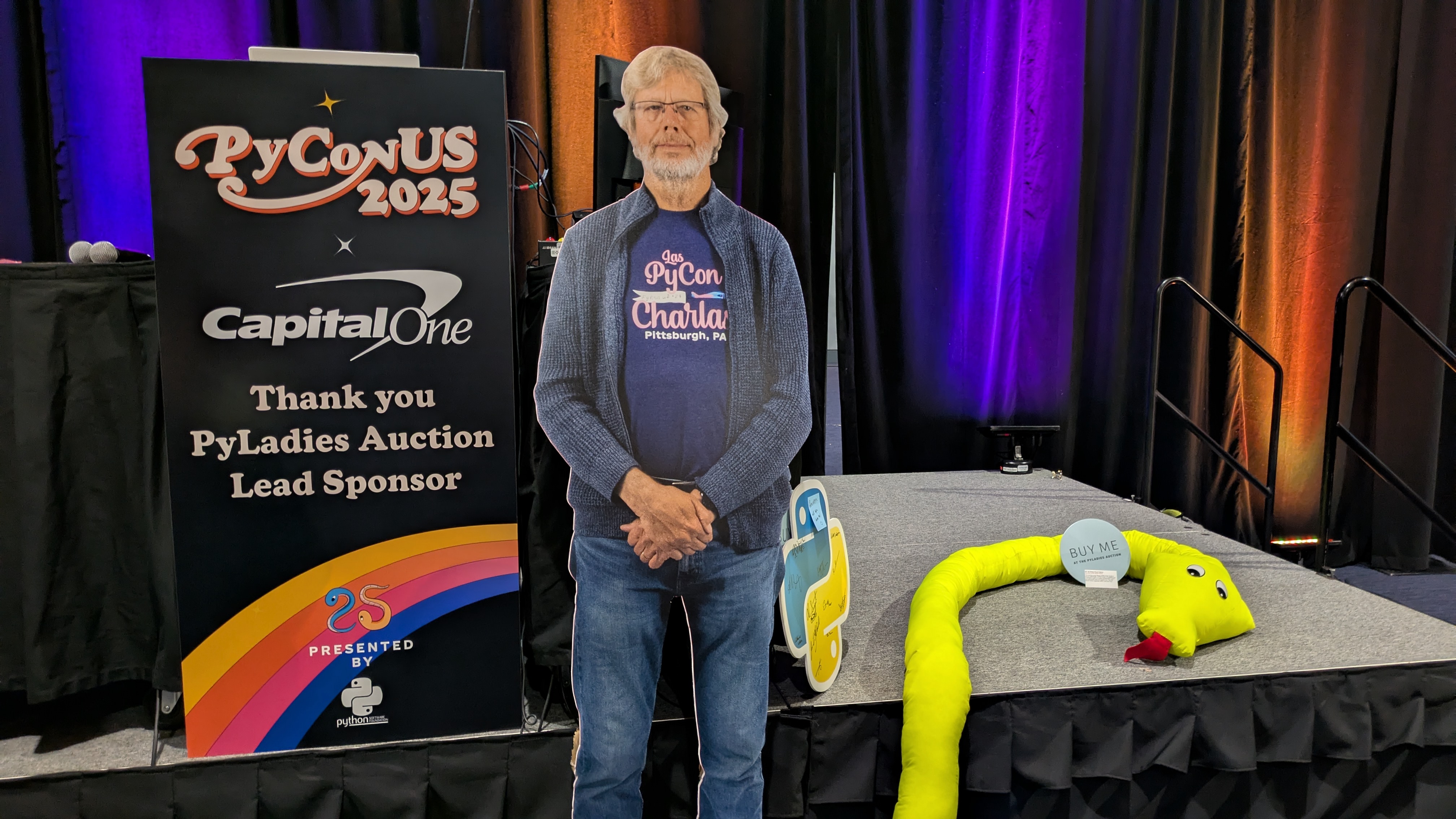 カンファレンス2日目の夜は毎年恒例のPyLadies Auctionです。 このイベントはPyCon USの関係者がグッズを提供し、オークション形式で購入するというものです。 落札されたお金は全てPyLadiesに寄付されて運営資金となる、というチャリティオークションです。