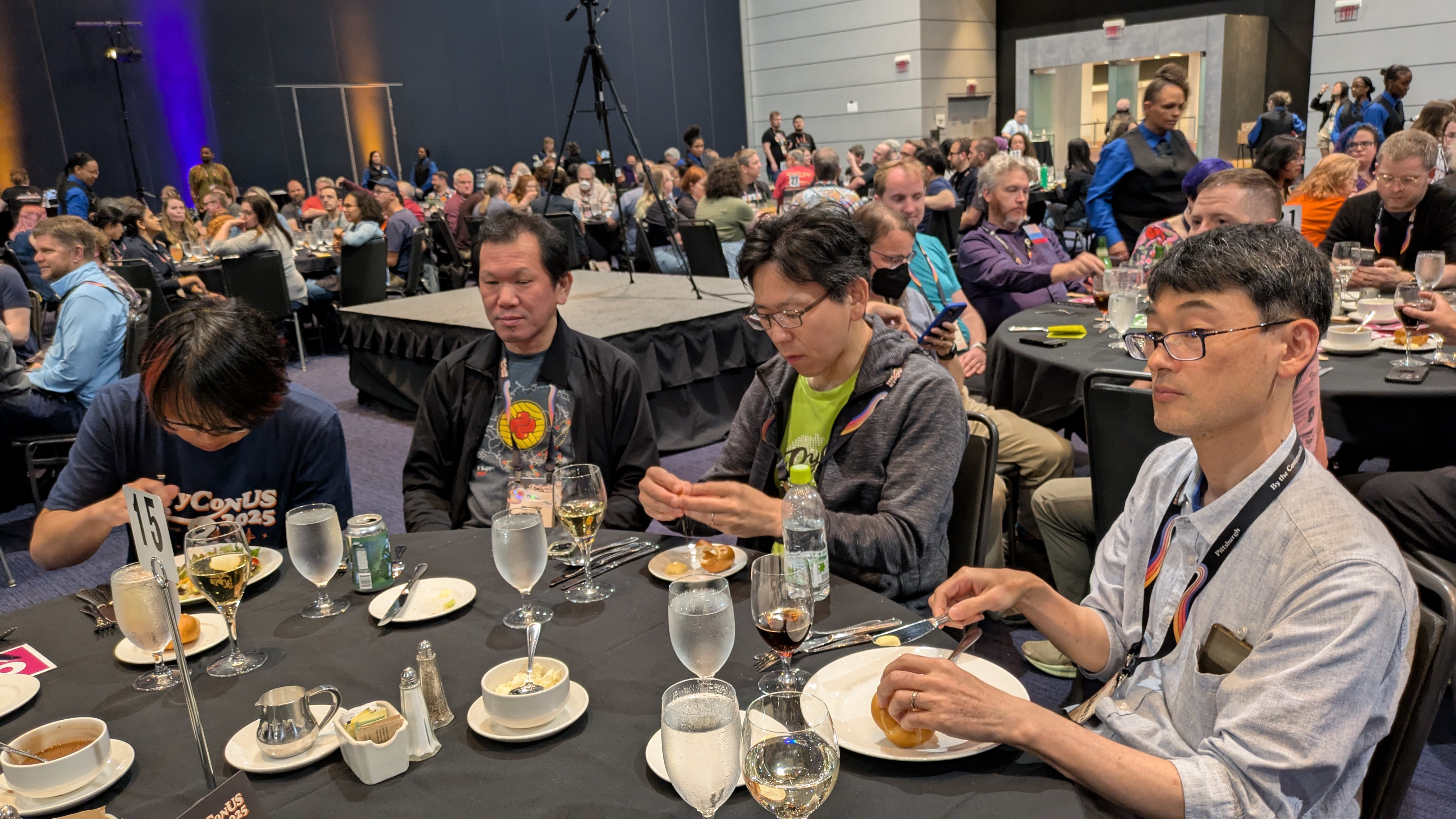 Cristián氏はベルリンからの参加だったため、やはり無事にアメリカに入国できるか少し心配だったようです。 ただ「自分たちはハッキングすることが得意だから、うまく行く方法を見つけようとしている」という話をしていました。 たしかにその考え方はエンジニア全般に通じるものがあるなと感じました。 Jay氏は昨年、PyCon USに来たがホテルでクレジットカードが通らず保証金が支払えない知人がおり、すぐにホテルに向かって代わりに支払ったそうです。 これは元々の知り合いじゃないとなかなかできないことですが、確かに現実で発生しそうなことだなと思いました。 筆者も2025年のPyCon APACでフィリピンのホテルに着いたときに、保証金が現金のみと言われ、他のメンバーに現金を借りました(危ない)。