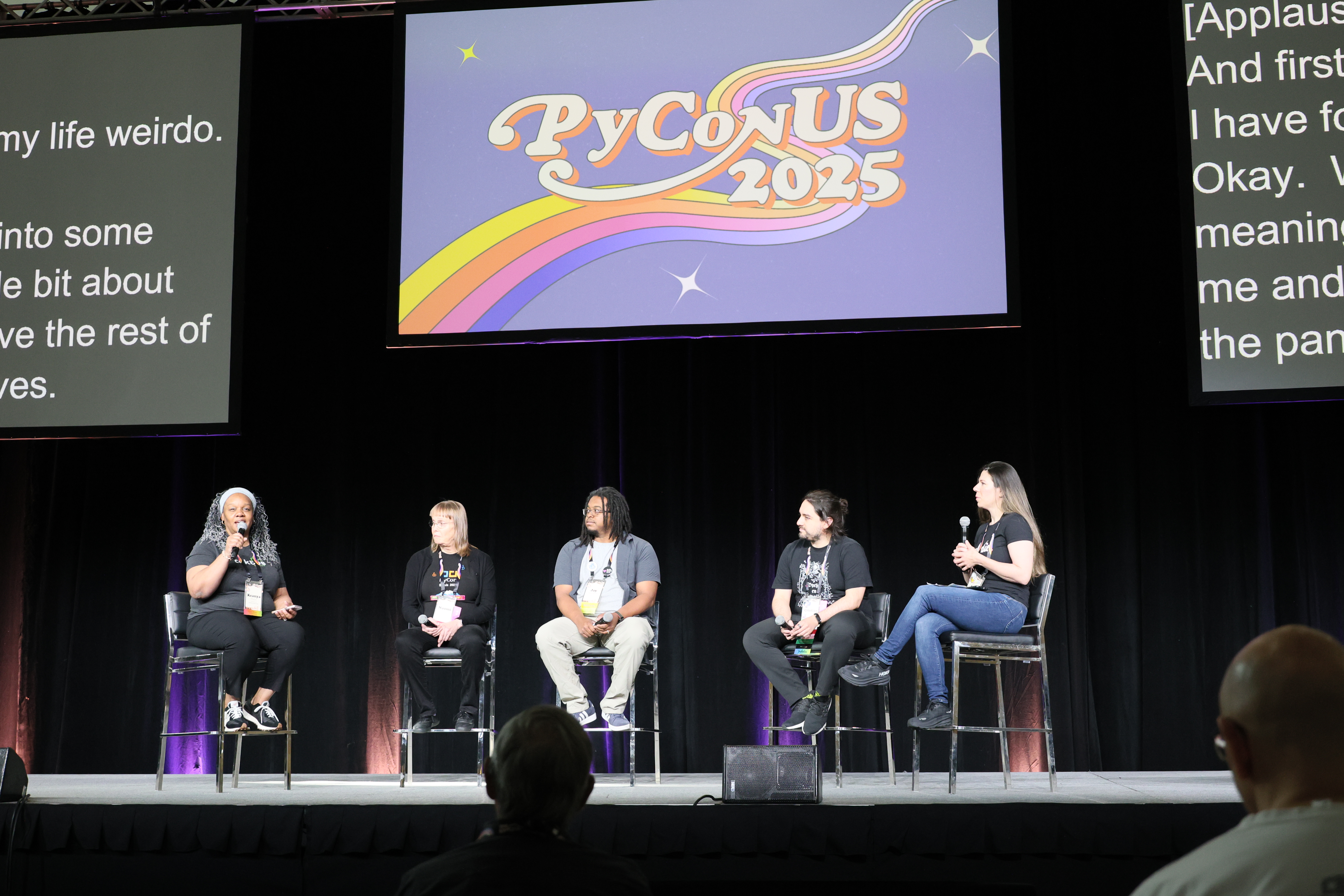 最初にPythonコミュニティで長年D&Iに取り組んできたNaomi氏に現状について質問をすると「心配している、がっかりしている、怒っている。しかし希望も持っている」と語られました。 これはおそらく最近のアメリカの国内・国際情勢について触れていると思われます。 今回のPyCon USへの渡航に際し、入国が厳しいのではないか、スマートフォンの中身を見られる[3]といった情報が事前にあり、筆者も少し気にしていました。 実際にアメリカに住んでいるパネラーのみなさんにとっても、色々と変化があるのだなと感じられました。