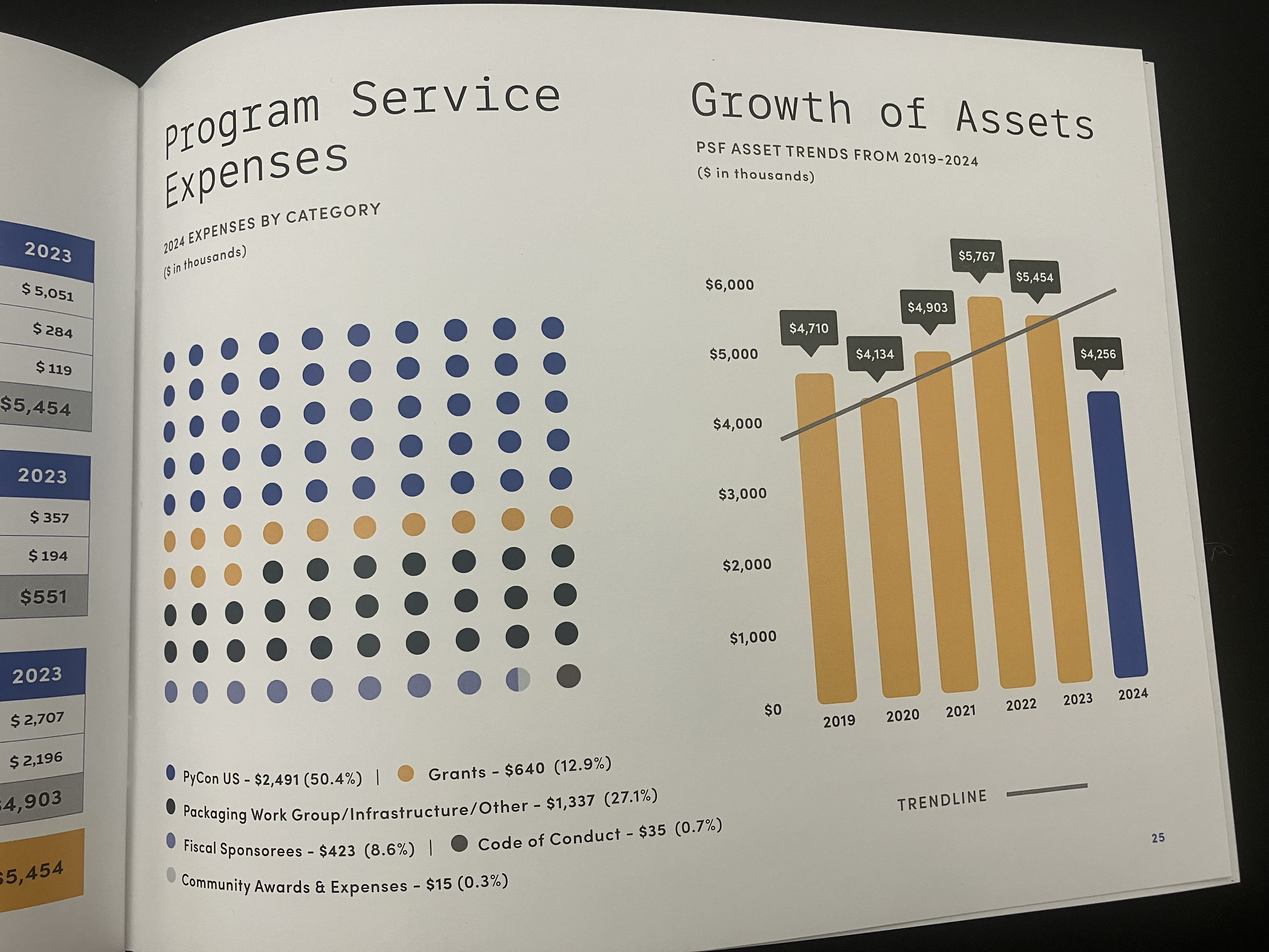活動や会計報告と言うだけでは無味乾燥に思われるかも知れませんが、今年もプレゼンテーションに加え、フルカラーで30ページ弱の報告資料冊子が用意されており、大変分かりやすくなっていました(冊子の電子データが2024 PSF Annual Impact Reportで参照できます)。